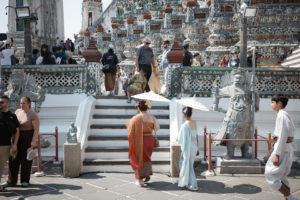 ワットアルンの周辺に貸し衣装屋やヘアメイクのお店が沢山あって、気合いが入ってる人も多数。
