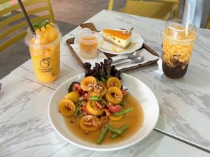 マヨンチットのソムタムとスムージー、ロイゲーオ、チーズケーキ、マヨンチットコーヒーを食べてきました。